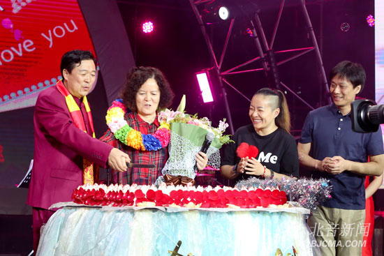 令人惊喜的是,北音25周岁正是衣江风老师60岁的生日,李罡院长携全体师生,共同为在北音辛勤工作了22年之久的衣老师送上了诚挚的祝福,场面温馨感人。在全场“生日快乐”的祝福歌声中,李罡院长和衣江风老师携手各院系领导一起切开了“北音25周岁”巨型生日蛋糕,向北音25周岁送上祝福,同时也表达着像衣江风老师一样扎根北音辛勤耕耘的北音人,他们与北音同甘苦、共荣辱,齐奋进,像一个大家庭一样团结一心,在以李罡院长为首的领导下,共创北音辉煌的美好愿景。