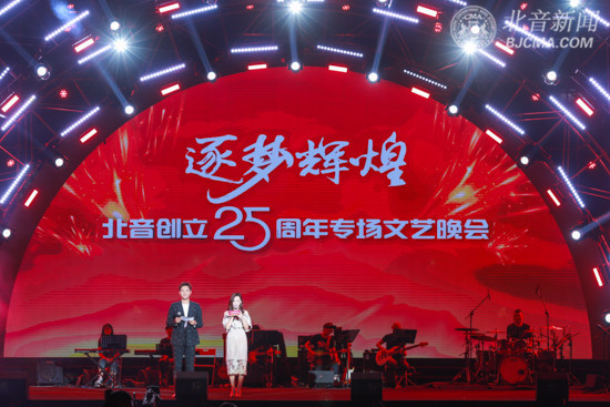 5月25日晚8时,北京现代音乐研修学院创立25周年专场文艺晚会《逐梦辉煌》浓情上演,著名音乐人马条、简弘亦、塔斯肯(北音教师)以及北音毕业生组合1022女团成员牛梦瑶等,与千余名北音学子和老师齐聚一堂,共同庆祝这场积淀了25年的盛会,为北音的明天续写华章。