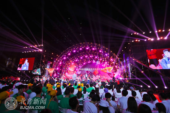 冷烟火和灯柱光影交错,动感单车表演朝气蓬勃,台下观众积极互动;“我是北音2017级学生”、“我爱你—北音”、“永远爱你—我的大北音”、“北音,我爱你”、“I love you—北音”,VCR中一段段激动人心的表白语回荡在现场,一张张热情洋溢的笑脸出现在大屏幕上……北音的莘莘学子不忘初心,积极向上,迎着旭日东升,充满励志活力的主题和“追根溯源,不忘初心,大美北音,我爱北音”的情怀在这一篇章中得到了很好的诠释。