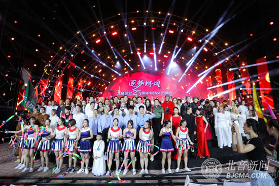 最后,晚会在贾红妤和刘家成老师共同演唱的《因梦而来》歌声中落下帷幕,北音师生与院领导们在舞台前合影留念,祈愿北音逐梦辉煌,开辟新时代。