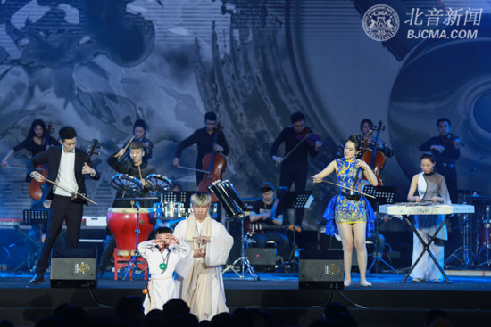 当现代遇上古典,当民族遇上世界,当国标遇上街舞,当年轻的我们遇上特立独行的北音,究竟会发生怎样奇妙的化学反应?各二级学院及附中各个核心专业身怀绝技的师生歌舞乐现场争奇斗技告诉了我们答案。现场,中国鼓与架子鼓的铿锵对阵拉开斗技大战,三弦挑战吉他,小提琴VS二胡,长笛对战萨克斯,国标遭遇街舞,美声、B-BOX、戏曲三元对抗,争奇斗技相继上演,台上剑拔弩张、当仁不让,气氛紧张,台下掌声雷动、喝彩不断,群情高涨,整个晚会气氛达到最高潮。