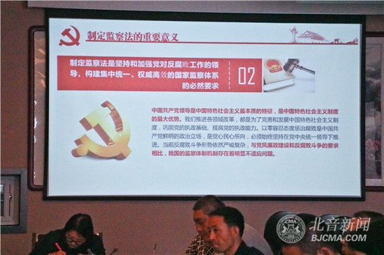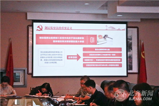 4月27日上午,北京现代音乐研修学院党委在党活动室召开扩大会议,集中组织进行了《中华人民共和国监察法》专题学习。