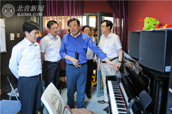 参观途中,李罡院长详细介绍了历年来学院举办的“北京▪九棵树数字音乐节”“第二届音乐剧发展国际论坛”“千人大乐队成功挑战吉尼斯世界纪录”以及被确认为第五轮中美人文交流高层磋商联合成果的“北京现代国际鼓手节”等大型品牌文化活动,介绍了北音建校以来在奥运会、残奥会、大运会、国庆60周年、建党90周年、央视春晚、央视五四晚会等国家级大型文艺活动中所做出的努力等。北音先进的教学理念和教育教学设施、突出的教学成果,特别是学院在产学研创和社会服务领域做出的突出贡献,给杜飞进部长一行留下了深刻印象。