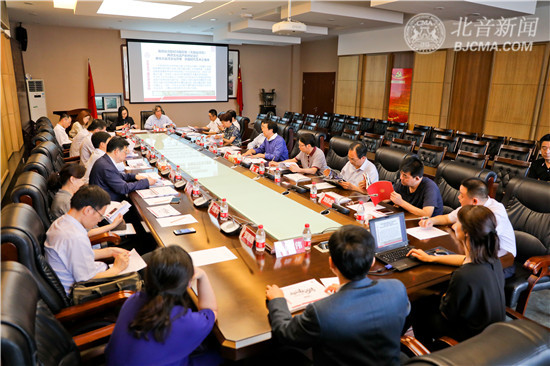 参观结束后,在学院第一会议室,李罡院长向杜飞进部长一行汇报了2018国家艺术基金项目——北音大型原创历史传奇音乐剧《天地运河情》的创作及排演情况。