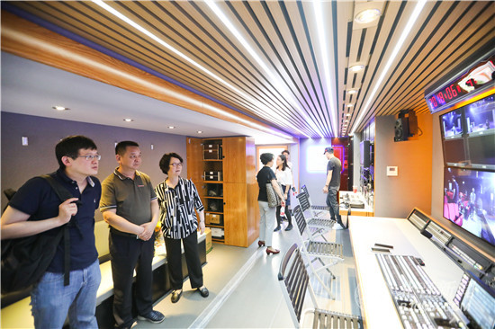 随后,在院领导的陪同下,姬云鹏副处长一行参观了学校琴房、MIDI教室、排练厅、DJ教室、教学楼、毕业生数字音乐作品展、舞蹈楼、高清电视转播车、黑匣子小剧场等各处。参观结束后,一行人赴北音盘山校区继续参观考察。