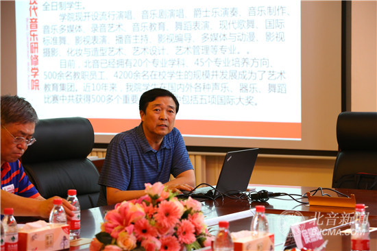 参观最后,李罡院长详细介绍了北音的基本情况,从学院承接的各种大型演出,到历届优秀学子的艺术作品,再到北音学子在《中国新歌声》《中国好声音》《中国好歌曲》等节目中的优异表现等,讲述了北音“打造产学研一体化的教育品牌,为北京艺术发展贡献力量、输出人才”的教育初心及取得的突出成果。