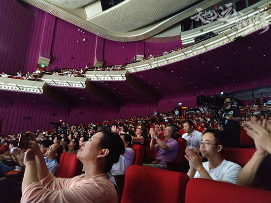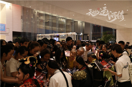 一位年近八旬的老戏迷梁老先生不顾天气炎热,下午五点钟就早早地来到剧场等待,在看完《天地运河情》演出后非常激动,一个劲地对着华美的舞台,伸出大拇指啧啧称赞:“这个舞台实在太壮美了,开篇演员出场的那个河流漩涡,就像一幅能动的古代画轴,太有创意了。还有最后那个正大光明金銮殿,我看了这么多年的戏,还没见过舞台效果这么真实,这么宏大的。还有我特别喜欢里面的各种小调,比如:芸娘出场弹琵琶唱的那一段,我一直跟着哼。听说这个戏是北音做的,我觉得作为通州人民,实在太骄傲了!”