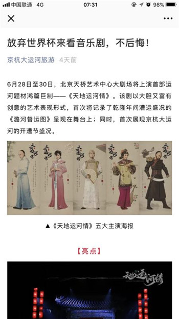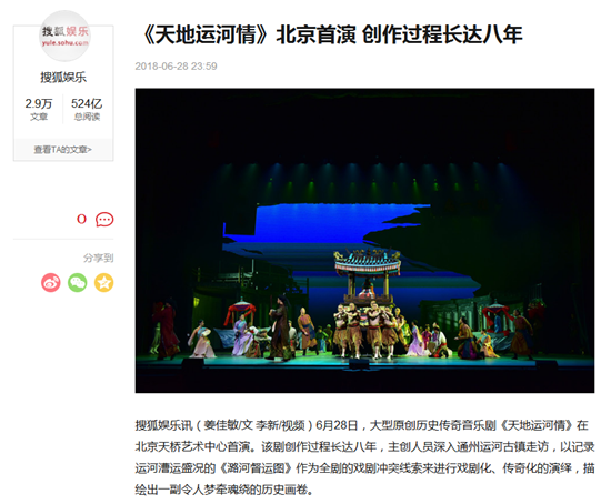 6月29日,由北京现代音乐研修学院出品,北京歌德永乐文化发展有限公司制作,中国国家博物馆、中共北京市通州区区委宣传部等单位大力支持的大型原创历史传奇音乐剧《天地运河情》首演第二场,在北京天桥艺术中心精彩继续,现场座位爆满,掌声雷动,好评如潮。这部剧的成功演出也引发了社会各界和广大媒体的广泛关注。今晚19:30,该剧将迎来本次首演的第三场演出,这也是本次首演的最后一场演出。