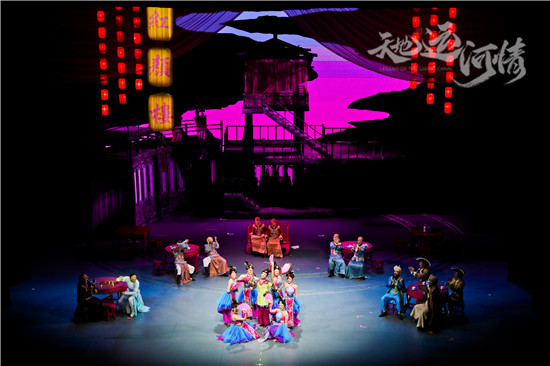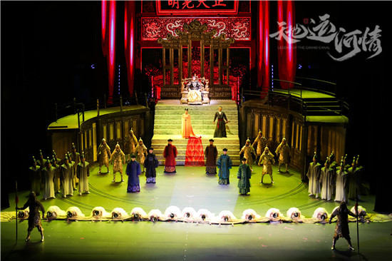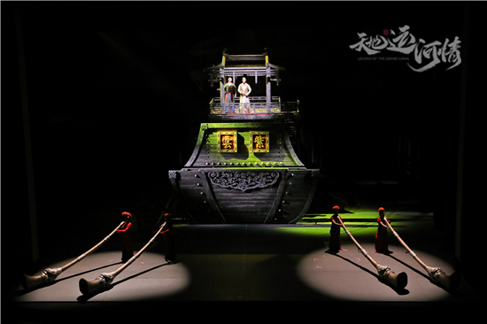 剧中《潞河督运图》的使用,得到了中国国家博物馆的特别授权。为了生动、形象地将国家宝藏《潞河督运图》的恢弘景象展现于世人面前,舞美结构用360度旋转舞台来完成对空间结构的处理,以部分实景与视效的配合来满足环境氛围的营造。同时,这部剧还首次将历史上运河的开漕盛况呈现在舞台,剧组特地斥巨资制作了一艘六米宽,八米九长的大船“紫云号”,这也是目前舞台上能够呈现的最大的一艘船。还有剧中姹紫嫣红的 “红颜楼”、金光灿灿的 “正大光明金銮殿”以及浪漫唯美的“运河大花船”等,在演出的三日中,每每大幕拉开,灯光亮起,均是一片感叹声和赞美声。