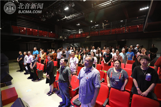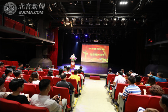 7月2日14点,在建党97周年之际,北京现代音乐研修学院党委揭牌仪式在学院黑匣子剧场隆重举行。通州区教工委副书记周颖同志,学院执行院长李平同志,学院党委书记杨迪龙同志、副书记孙静同志以及学院全体党员、中层以上干部和党员发展对象、积极分子近100人出席了揭牌仪式。