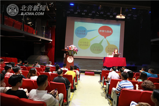 为推动“两学一做”和“党旗引领、师魂筑梦”主题教育实践活动向纵深发展,在庆祝建党97周年之际,7月2日下午,北京现代音乐研修学院党委组织开展了“庆七一、讲党课”活动。北京市通州区教工委副书记周颖同志,学院党委书记杨迪龙、副书记孙静及其他党委委员、全体党员、党员发展对象、入党积极分子近百人参加了听课。