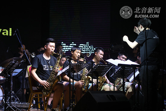 第三支演出乐队是CMA爵士大乐队。让人惊喜的是,曾3次参加北音鼓手节、现已年过80的Gene Aitken博士,来到演出现场,担任乐队指挥,他充满活力和动感的指挥,好像在跟着大乐队的乐章跳舞,观众们纷纷向这位终身为爵士乐教育奉献的老艺术家鼓掌致敬。