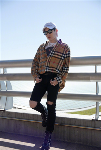 本次造型,杨文昊上身身穿白色印花T恤和一件拼接色格子纹衬衫,左右不对称,款式别致。下身则选择了一条黑色的破洞牛仔裤,搭配一根黑色皮带,潮范十足。脚踩一双黑色马丁靴,酷帅酷帅的。在饰品的搭配上,杨文昊选择了白色印花棒球帽、黑色墨镜和风格别致的耳钉、项链和戒指,个性的搭配,既体现了对饰品搭配的独到见解,又张扬了街舞男孩先天异禀的艺术细胞,不愧是街舞界的穿搭扛把子!