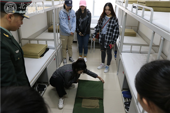 学员们用实际行动向北音师生演示了军人标准的内务,他们采用边操作边讲解的方式,指导学生运用“压、折、挤、掏”等基本动作完成从棉被到“豆腐块”的升华,他们高昂的精神面貌和整洁的内务布局给参观师生强烈的震撼,学员们日常的行为表现给观摩师生上了一堂生动的行为习惯教育课。当师生们看到宿舍整理得如此干净整洁时,都发出了赞美之声。