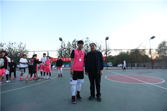 学生处李忠余处长为“最有价值球员”颁奖并合影