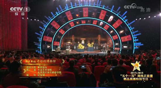 为进一步集中展现活动中涌现的正能量榜样和精品力作,紧紧围绕党的十九大以来网上宣传文化工作新成果,中央电视台《点赞中国——2017-2018“五个一百”网络正能量精品展播特别节目》于11月21日22:40在中央电视台综合频道(CCTV-1)如期播出,并于22日20:40在中央电视台科教频道(CCTV-10)进行了重播(香港特区同步播出),北京现代音乐研修学院流行舞系学生在节目中带来了的精彩演出《奇妙的博物馆》。