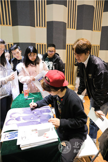 见面会后,展展和罗罗热情地给粉丝和校友们签名合影。随后,来到了北音的校史馆,进行参观,并送上了亲笔签名的EP和视频祝福。