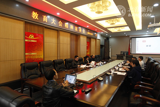 随后,周书记从"教育是国之大计、党之大计,是民族振兴、社会进步的重要基石"、"坚持党对教育事业的全面领导的根本要求"、“坚持立德树人根本任务”、"落实教育优先发展战略"、“坚持社会主义办学方向”“加强新时代教师队伍建设”等10个方面对“两个教育大会精神”进行了详细宣讲,提出了统一思想、研判形势、落实要求、创新发展的有关要求。