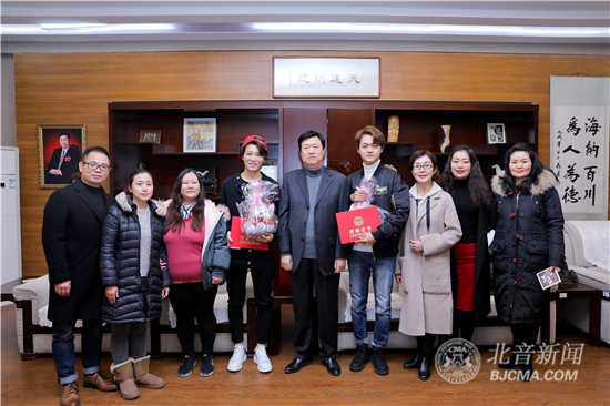 2018年,一首《沙漠骆驼》以火爆速度蹿红网络,引发全民刷屏热潮,抖音上播出的两条视频点赞230多万、转发13万,抖音《沙漠骆驼》话题被使用达3.9亿;在酷狗音乐播放量超过14亿次,连续50天霸榜酷狗TOP500榜单榜首,短时间内斩获38w+热评的傲人成绩,并相继登上过咪咕华语榜(内地)、咪咕彩铃榜榜首、酷我热歌榜榜首。这首歌的作者兼原唱展展与罗罗,就是北京现代音乐研修学院2005级爵士乐学院学生施展(展展)和北音流行演唱学院2007级学生罗中凯(罗罗)。图为12月20日,展展与罗罗携最新EP《我的舞台》回到母校看望恩师并举行校友见面会。