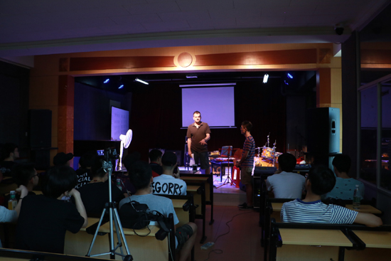 Dmitry Strelianny与同学们分享了自己对鼓乐器表演的经验和技巧,并通过“套鼓上的旋律化”“演奏方式”两个方面详细讲解鼓的旋律方法,分析了如何构建自己的风格。而后,Dmitry Strelianny进行了动感十足的现场演奏,以便大家更深刻地体会其所讲内容。Dmitry Strelianny告诉大家,“把各种风格和声音融为一体变成一种平衡的有品味的音乐语言,在这种氛围中生活,才能在音乐上成长。”