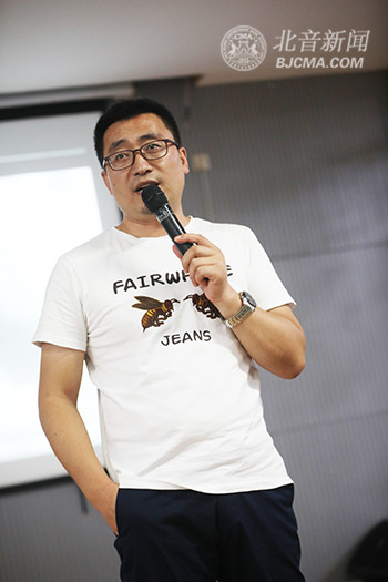 为了帮助同学们走出创作误区,让大家了解创作之初该做些什么以及如何使用动机进行创作,潘永峰分享了自己的心得经验并用音乐实例进行详细讲解:“单音动机核心是节奏律动。不断重复即意味着节奏设计,任何一个声部,都需要创作,当形成旋律之后,再进行立体化编配,也就涉及到编曲这一步了,张杰《骄傲的选择》就是遵循着这个规律。而像邓紫琪的《另一个童话》和褚乔的《故事》,则是采用尝试不同音程设计的方法,也叫音程式动机。”有素养的音乐人应该懂得“有方法,有条理,有动机,有营养,会发展,才能做一个合格的作曲人。”