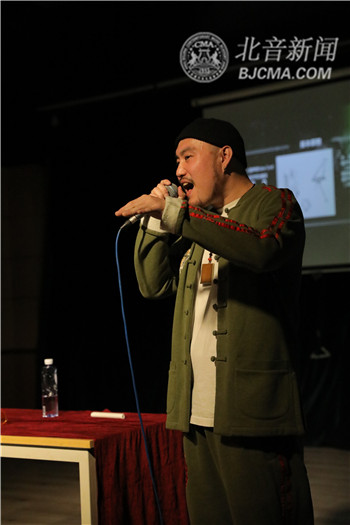 黄振兴老师先就声门打开、声门紧闭和良好闭合三种声门的动态变化,进行了详细的分析讲解。在梳理了理论知识后,黄振兴老师带着同学们进行发声和换气练习,针对同学们 “感觉自己就是不会唱歌”的疑惑,黄振兴老师这样说道:“我们在了解了声音怎么操作后,会发现天分和与生俱来的东西,其实在我们演唱中占很小的比例,只有通过认真的思考和细节的观察,我们才能真正解决唱好歌的问题。”