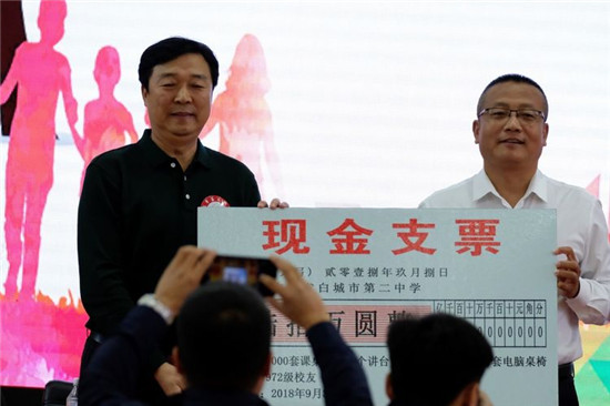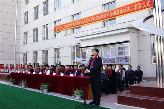 李罡说,1972年他从靖安小学毕业,至今已近50年了。去年,通过同学、朋友了解到母校的现状后,李罡就决定用行动回馈母校。他出资100余万元建设了靖安小学塑胶跑道、草坪操场等工程。他还为另一所母校白城市第二中学捐赠了60余万元,购置了1000套桌椅、48台电脑。