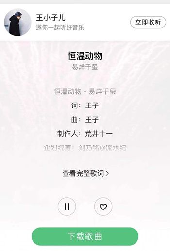 除了为易烊千玺的《恒温动物》作词作曲外,王子还是摩登兄弟新歌《不求》的词曲作者,也是萱萱新歌《多爱一天》的曲作者。
