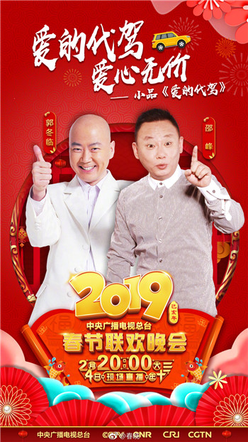 2月4日(除夕)晚,2019央视春晚正如火如荼上演,为全球华人献上一道丰盛的年夜大餐。继20多名北音学子助演小品《站台》、北音附中毕业生吴磊与易烊千玺等演唱《我们都是追梦人》、北音音乐科技学院毕业生弦子与阿云嗄等演唱《同心共筑中国梦》的精彩演出后,北京现代音乐研修学院表演系刘思博、郭祎男、唐子皓3名同学精彩助演郭冬临、邵峰小品《爱的代驾》。