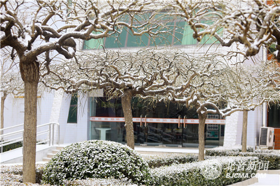 朦胧飘渺的天空中飞舞旋转着肆意欢快的雪花,树梢上挂满了晶莹剔透的冰坠,北京现代音乐研修学院校园宛如一幅美丽的画卷,承载着满满的银装素裹。