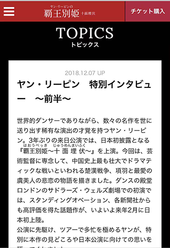 近日,由中国舞蹈家杨丽萍担任导演、编舞的舞蹈剧《霸王别姬 —— 十面埋伏》在日本东京涉谷东急文化村Orchard Hall成功公演,北京现代音乐研修学院毕业生肖富春作为舞剧中韩信(白)的饰演者备受关注,获得日媒一致好评。