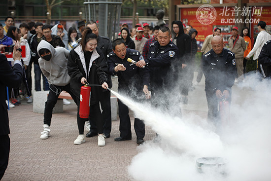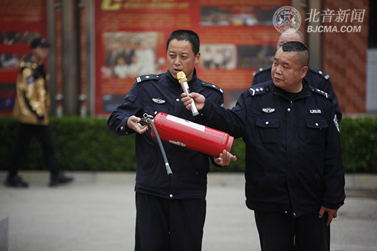 16:50,伴随着响彻校园的警报声,校园安全疏散演练正式开始,教学楼、综合楼、宿舍楼的学生们在各院系教师的组织带领下有秩序地撤离,井然有序地到达东院花坛处整队集合。而后,由北音保卫处人员,为同学们现场演示如何使用消防器具,在火情未扩大时如何进行安全的自救式扑火,对保障自身的生命财产安全有了进一步的认知。