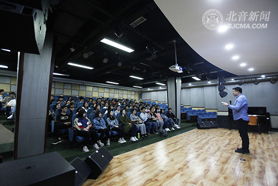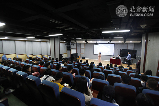 4月17日,青年朗诵家、一级播音员浩然做客北京现代音乐研修学院大师讲堂,以“融媒体环境下,有声语言艺术的突破之道”为主题,在地下报告厅为播音主持系的同学们带来了一场精彩的大师课。