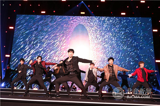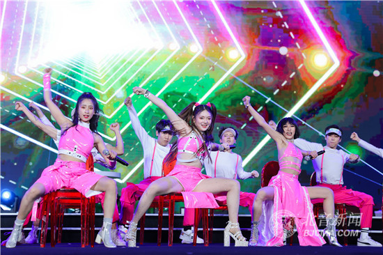 晚会现场,一段将祖国自1949年至2019年所走过的光辉历程,与北音自1993年至2019年的发展历史相互交融的《我和我的祖国》主题视频,以及在原歌曲作品基础上进行了“多元风格、叠加演绎”和视频、光影、道具的运用的开场歌舞《我爱你中国》,拉开了晚会演出序幕,瞬间激起了全场师生澎湃的爱国爱校情怀,掀起了开场的高潮。