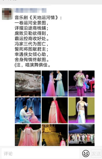 《天地运河情》以收藏于中国国家博物馆的清代名画《潞河督运图》为灵感来源,从国家战略高度重新审视并深刻挖掘了大运河历史文化,历时八年精心打磨,并成功入选2018年度国家艺术基金支持项目和北京文化艺术基金。该剧以大胆又富有创意的艺术表现形式,首次将记录了乾隆年间漕运盛况的《潞河督运图》呈现在舞台上,这也是京杭大运河的开漕节盛况首次从史书中走出来,以舞台化的表现形式与观众见面。