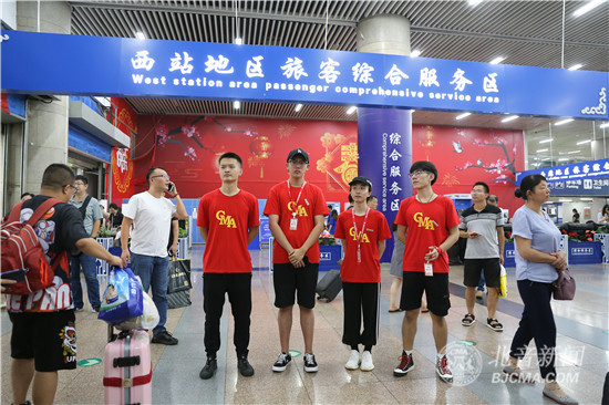 清晨6时,北音迎新志愿者们随着学校班车前往北京各站迎接新生的到来。上午8时,迎新工作人员全部各就各位,随时待命。随着学院派往北京站、北京西站、北京南站的接站专车陆续返回学院,各二级院咨询处队伍一字排开,报到迎新工作有序进行。