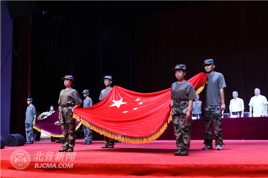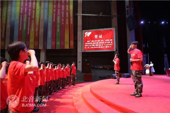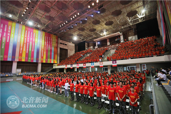 8月11日下午,北京现代音乐研修学院及附中“70周年 我与祖国同在”2019级新生开学典礼在北音盘山校区综合馆隆重举行,在雄壮的国歌声中,中华人民共和国国旗、北京现代音乐研修学院院旗、北音附中——北京市现代音乐学校校旗依次入场,北音及附中2019级新生庄严宣誓。执行院长李平、副院长马铁英、李慧勇等院领导出席典礼。