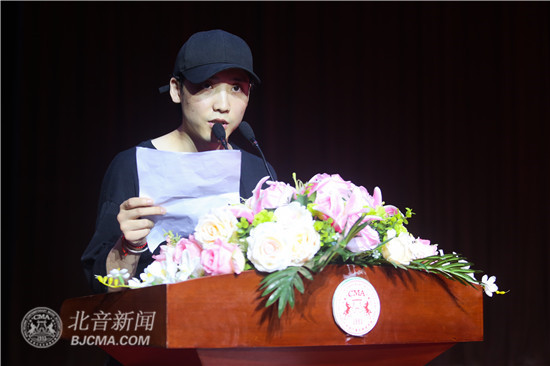 典礼上,中国原创音乐人、北音爵士乐学院2016届毕业生——《这!就是原创》全国亚军闫泽欢,为2019级的师弟师妹们带来了原创歌曲《雨天》,并送上了对新生们的寄语:“作为师哥我希望,大家可以勤于思考,勇于探寻,敢于破解难题,让所学的专业为自己、为社会做出最大的贡献。”