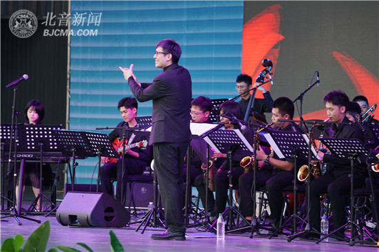 北音CMA爵士大乐队与学校爵士人声专业的三位歌手,精心编排了13首正宗的摇摆爵士乐作品,和现场300名老老少少的观众们一起享受着绿树阳光、艺术与青春的感染,充分响应北京市城市副中心打造台湖演艺小镇理念,提升区域艺术氛围,带动演艺小镇发展,让更多群众共享艺术果实。