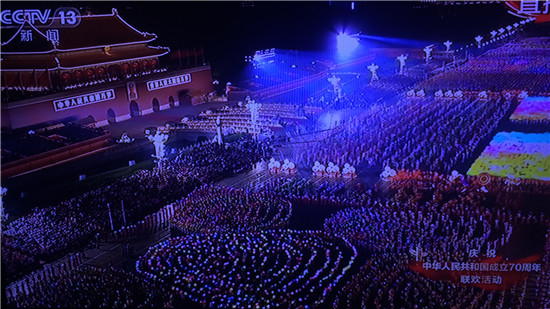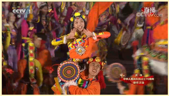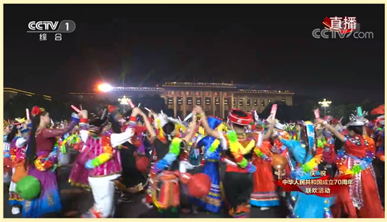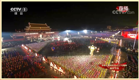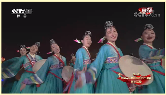 2019年10月1日晚,在天安门广场上,庆祝中华人民共和国成立70周年联欢活动盛大举行,北京现代音乐研修学院与“姊妹院校”天津体育学院运动与文化艺术学院(简称“天艺”)的学子们身着民族服装,载歌载舞,为祖国献上最真挚的祝福。