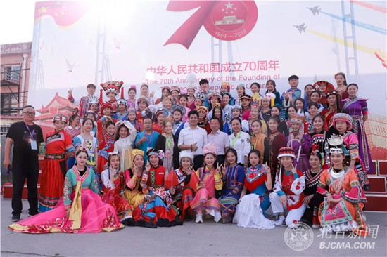 10月1日晚8点,继盛大庆祝新中国成立70周年大会后,天安门再次成为欢乐的海洋。伴随着绚烂的烟花和欢快的音乐,表演者们载歌载舞,万众同欢,充分展现了全国人民团结友爱、亲如一家的美好情景,表达了对祖国70岁生日最真挚的祝福。北京现代音乐研修学院及“姊妹院校”天津体育学院运动与文化艺术学院196名同学参加了联欢活动第一篇章《好儿好女好家园》、第二篇章《山笑水笑人欢笑》、第三篇章《新天新地新时代》、第四篇章《同心同乐同祝愿》的表演任务,为现场以及电视机前的观众朋友们呈现一场精彩绝伦的视听盛宴,向全国人民展现了两校学子专业的艺术素养和蓬勃的精神风貌。