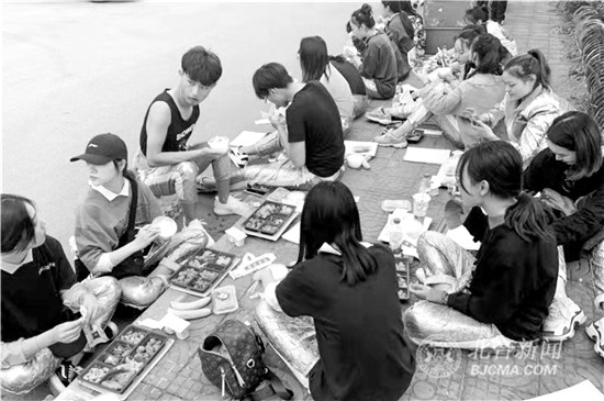 在这次排练中,最让我记忆犹新的就是用餐了,因为每次吃饭都说是跟时间赛跑,为了赢得更多的练习时间,每个人都使出奶劲跑到食堂门口。大多时候,我们跑不过舞校的孩子们,哪怕我们提前跑,也还是跑不过,与朋友私下聊天的时候,还有同学还给他们起了个“红魔”的外号,可能因为他们穿着红色的衣服吧。