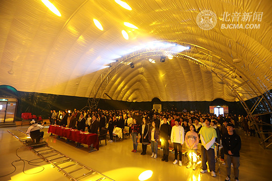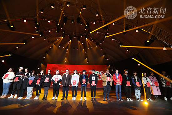 最后,舞台上唱响了北音校歌《爱在北音》,歌声中同学们纷纷拿出手机点亮手机全场合唱,温暖的北音之情使气模馆气氛迅速飙升。一曲终了,颁奖典礼圆满落幕,希望获得表彰的同学们,继续在校园里发光发热。