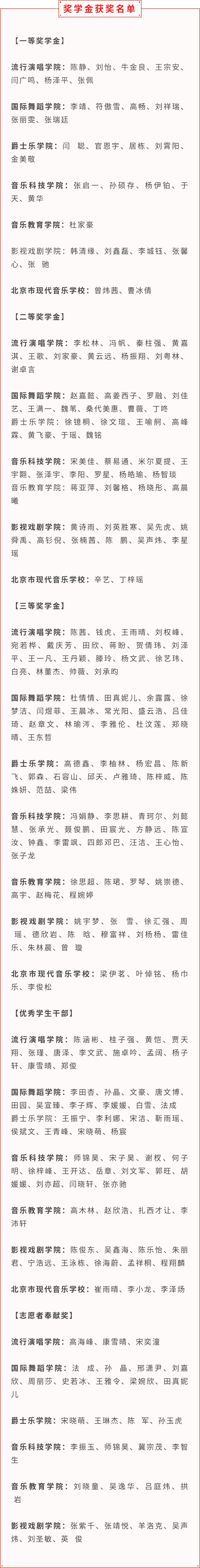 10月29日,北京现代音乐研修学院2018-2019学年奖学金颁奖典礼在气膜馆精彩举行。副院长马铁英,党委书记杨迪龙,副院长李忠余、术洪波等领导出席典礼,并为获奖学生颁奖。