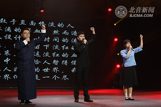 最后一个节目《征程中的播音少年》,不仅展示了播音学子对播音前辈的敬仰之情,同时也带我们领略了前辈们的播音风采。让我们了解到了播音主持艺术,不只是读一份稿件,念一段独白,更让我们感受到了北音播音少年的使命感。