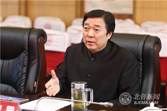 会上,李罡院长向汤一原部长一行介绍了历年来北音举办的“北京▪九棵树数字音乐节”、“第二届音乐剧发展国际论坛”、“千人大乐队吉尼斯世界纪录”、“北京现代国际鼓手节”等大型品牌文化活动,以及北音建校以来在奥运会、残奥会、国庆60周年、国庆70周年等国家级大型文艺活动中所做出的努力和贡献等相关情况,党委书记杨迪龙就北音党委建立以来学院的发展和党建工作的开展情况进行了汇报。