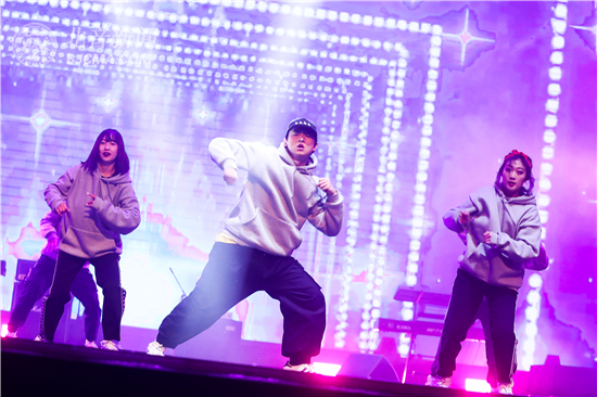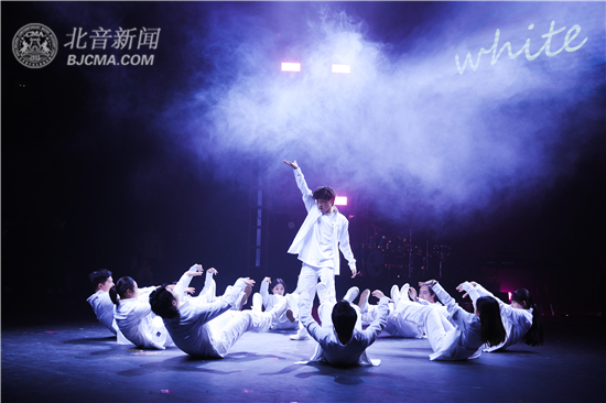 晚会进入第三篇章《立志成才》,音乐响起灯光打开,一位熟悉的身影来到台前。从《中国新歌声》的导师“四冲”人气王,到《创造101》里“3A组”的实力Vocal,北音附中学子吴映香一直在向大众展示她在歌唱方面独特的天赋,不同的曲风对她而言也是信手拈来,《我的梦+Undo》也给大家带来了一个完全不同的“甜美系吴映香”。随后登场的声乐艺术部、器艺术乐部、现代舞蹈艺术部、表演艺术部的同学们精彩呈现了器乐演奏《WesterChester Lady》、Popping《Greatest》、HiP-pop《Young King》、合唱《真爱乐章》和诗朗诵《我们永远在路上》,展现了北音附中学子扬帆起航、自强不息、立志成才的新时代逐梦少年的青春风采。现代歌舞艺术部张晶主任带领学部教师们更是用最真诚、最热烈的方式,带来劲爆全场的All Style街舞《引领》向北音附中20周年献礼,向附中学子提出期许,掀起晚会又一个高潮。