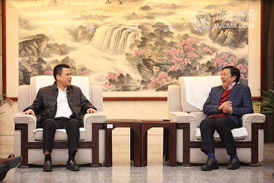 星海音乐学院党委书记王秀明(左)、北京现代音乐研修学院院长李罡(右)现场交流