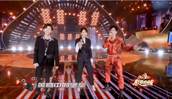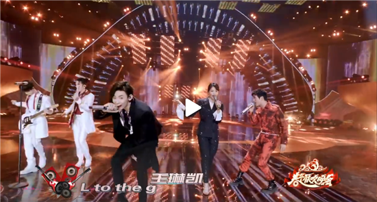 晚会现场,“跨界歌王召集人”刘涛拉起了自己的“跨界歌王乐队”,由刘涛担当主唱、李治廷任鼓手、王琳凯担当说唱,带来炸裂表演《远走高飞》。