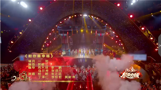 晚会伊始,杨紫与乐华七子NEXT朱正廷、丁泽仁、李权哲、黄新淳共同带来开场歌舞《数你最幸福》,活力满满,喜气洋洋,完美诠释了晚会“数你最幸福”的主题。